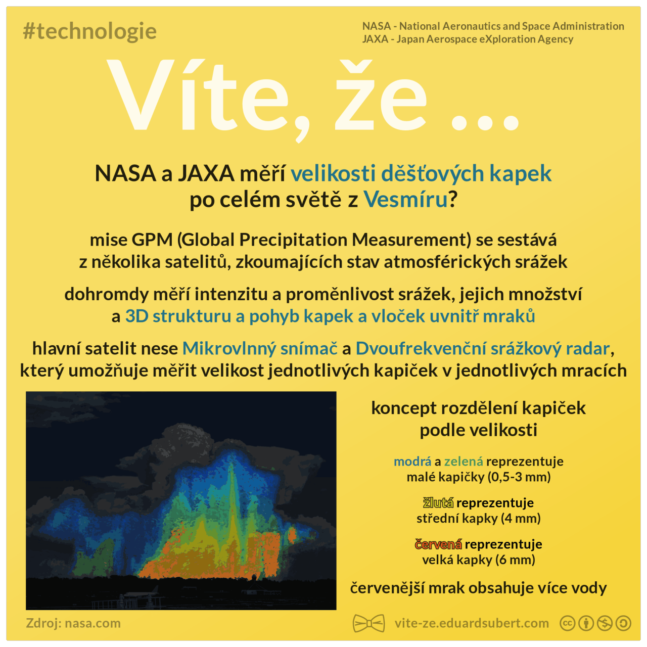 Víte, že … NASA a JAXA měří velikosti dešťových kapek po celém světě z Vesmíru? verze pro tisk: https://drive.google.com/open?id=0B1XX57kxVRfNZ1NNZ0hnR0FJaTQ vite-ze.eduardsubert.com
