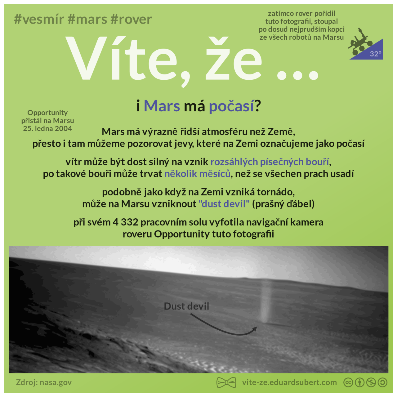 Víte, že … i Mars má počasí? vite-ze.eduardsubert.com fotografie: http://www.jpl.nasa.gov/news/news.php?feature=6265 verze pro tisk: https://drive.google.com/open?id=0B1XX57kxVRfNTzlzbkZQRnE3cU0